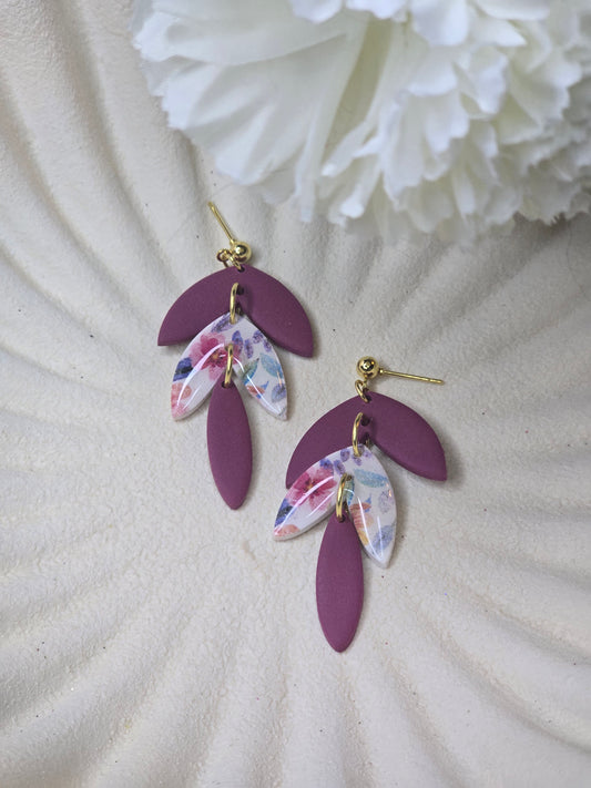 Leaf dangles pink and floral| can be switched for silver