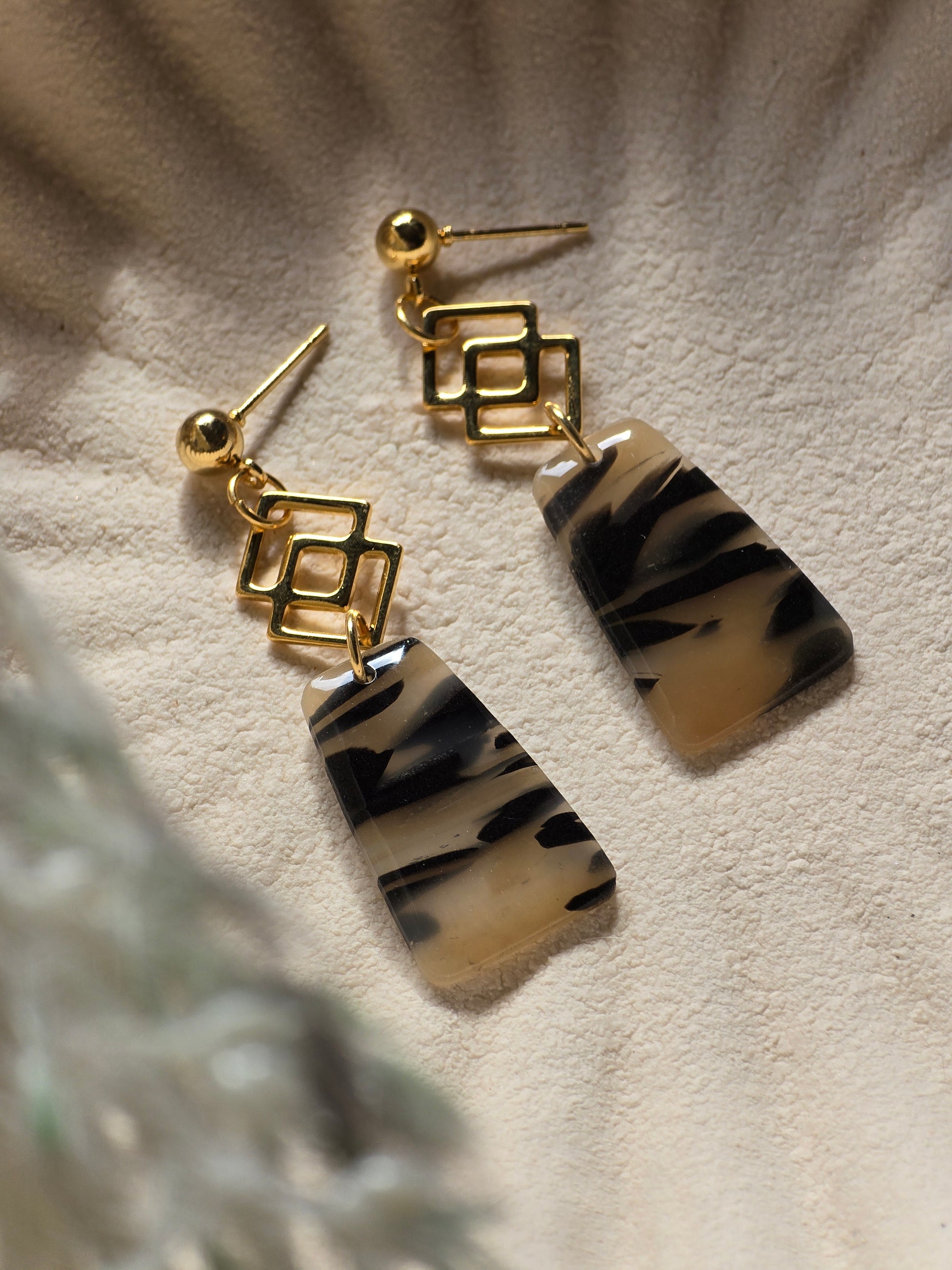 Elevate your autumn wardrobe with these elegant faux tortoise shell geometric dangle earrings. Their warm, sophisticated hues perfectly capture the season’s essence. Comfort meets style in a design that supports your graceful, seasonal look with ease.