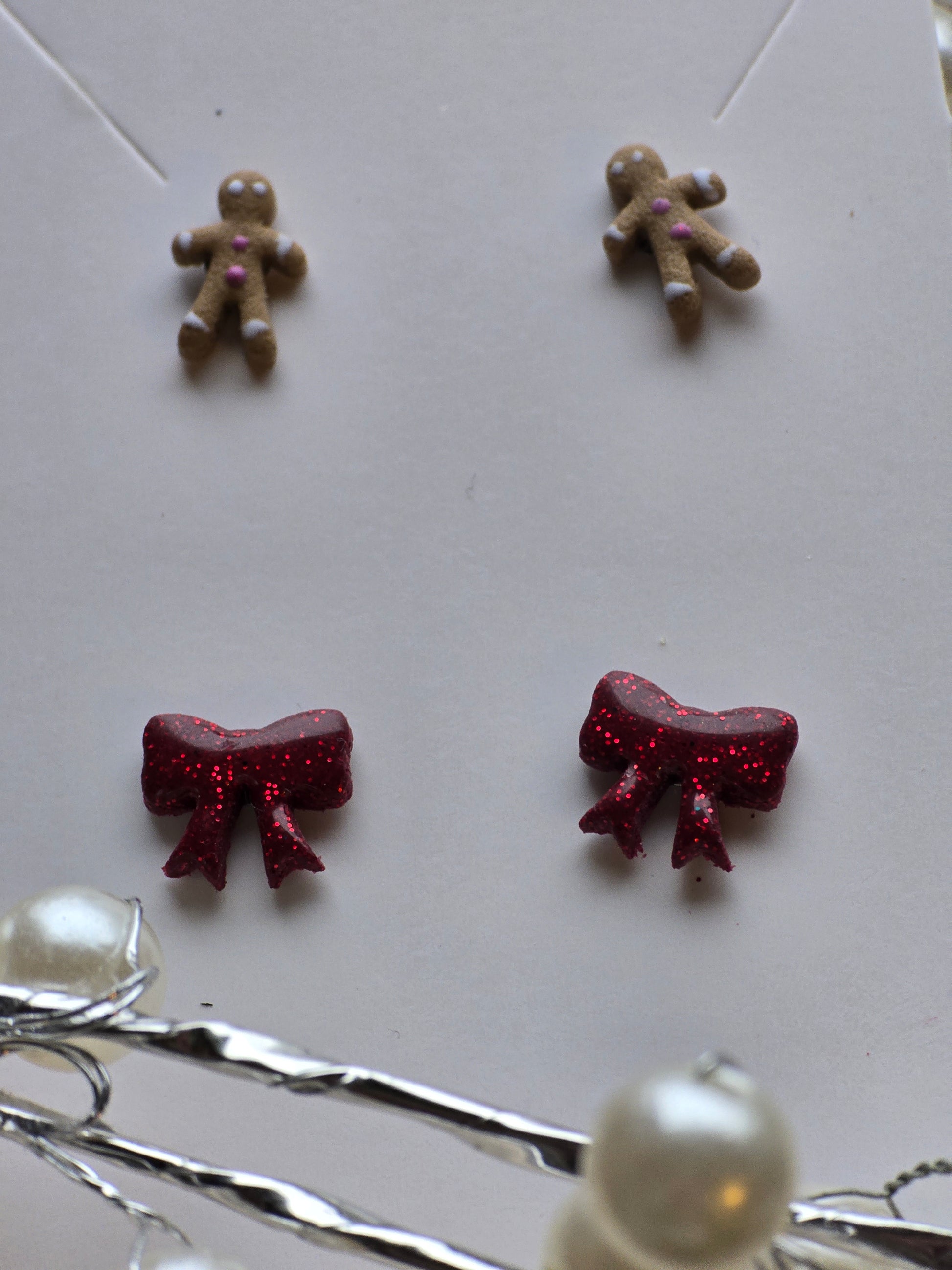 Add some festive charm to your wardrobe with our Gingerbread/Bow Stud Pack! These cute studs feature adorable gingerbread men and red glitter bows, perfect for the holiday season. Don't worry about being too flashy, the dainty design keeps things discreet. Perfect for the Christmas lover in all of us.