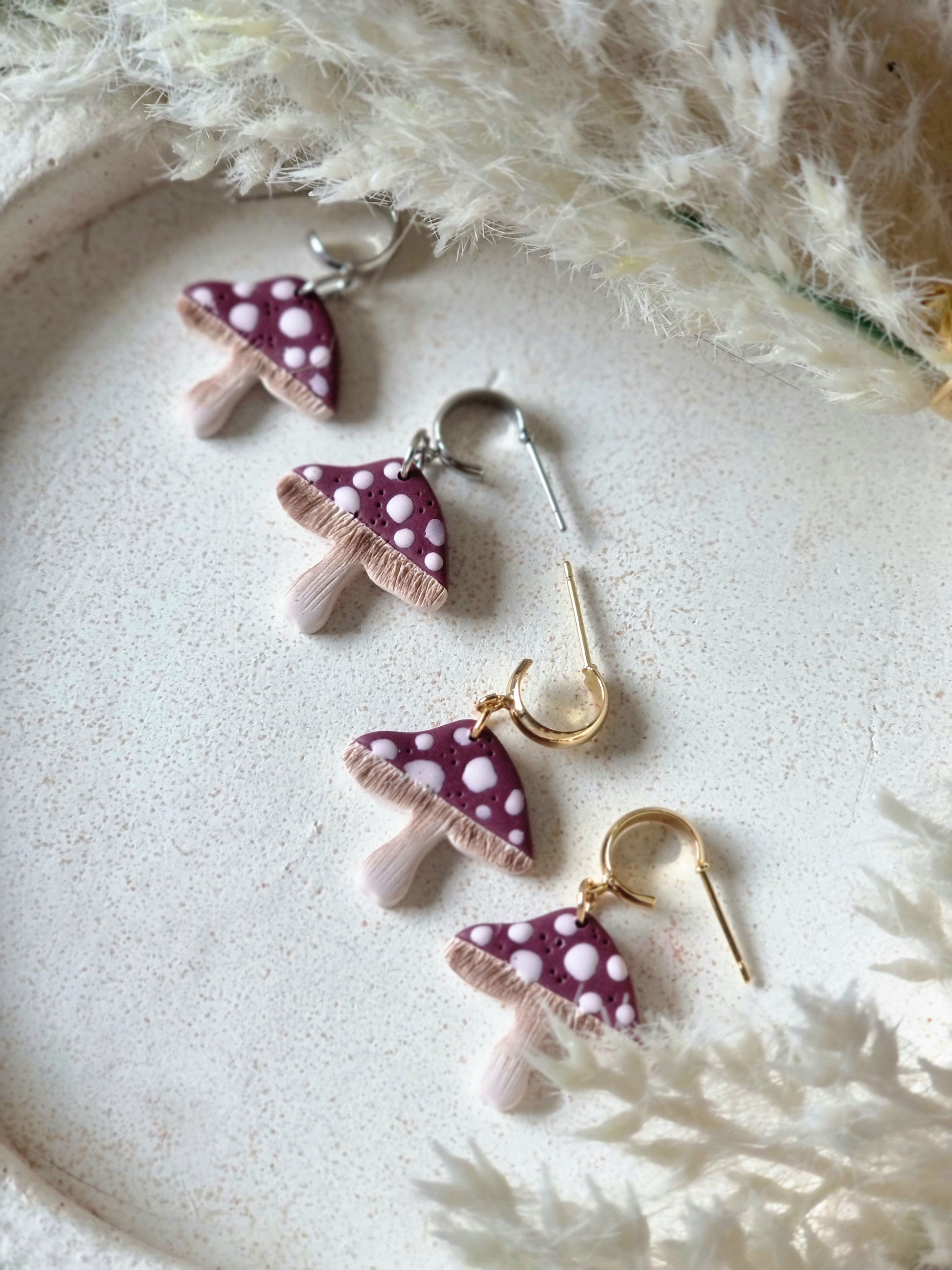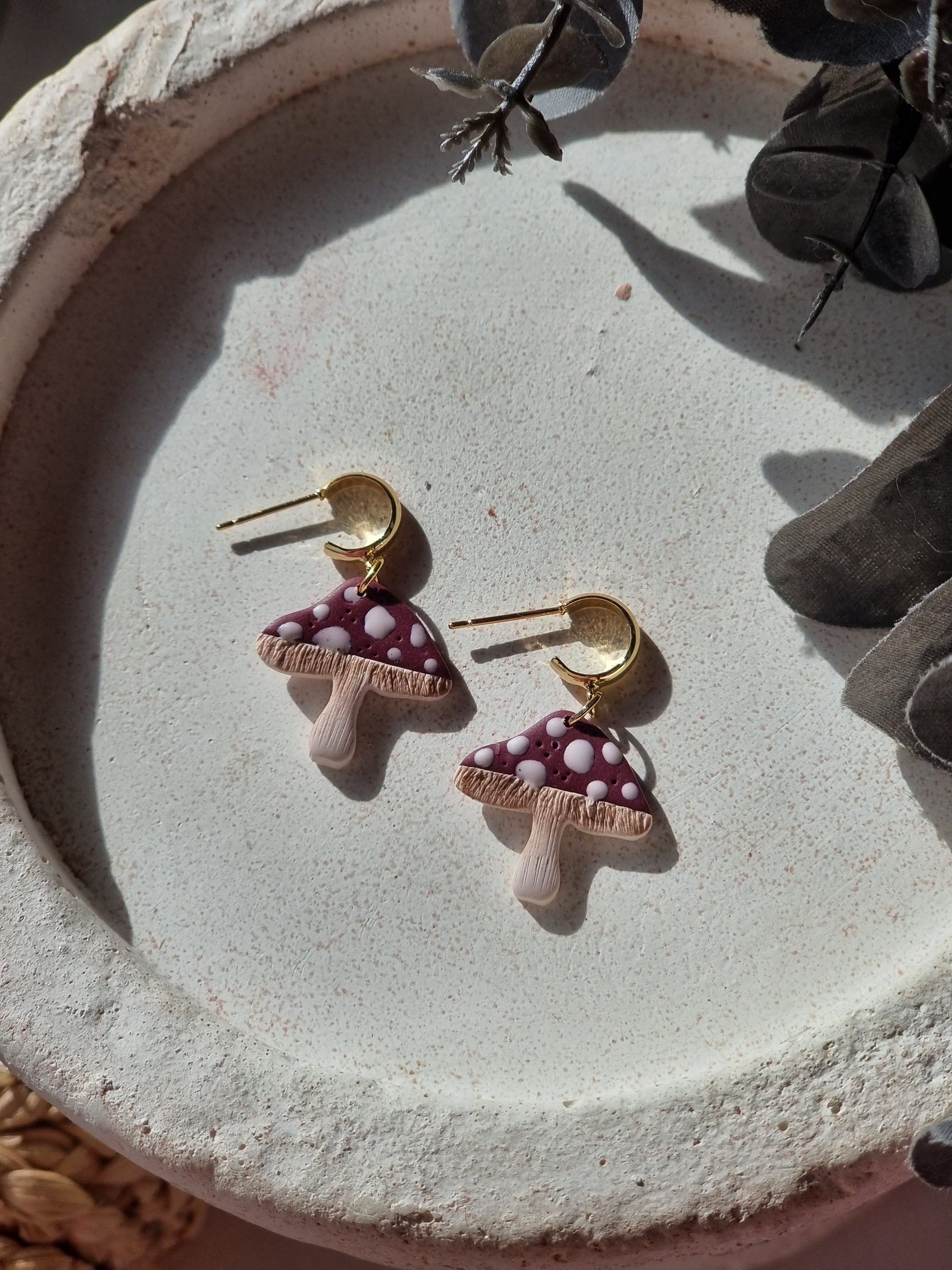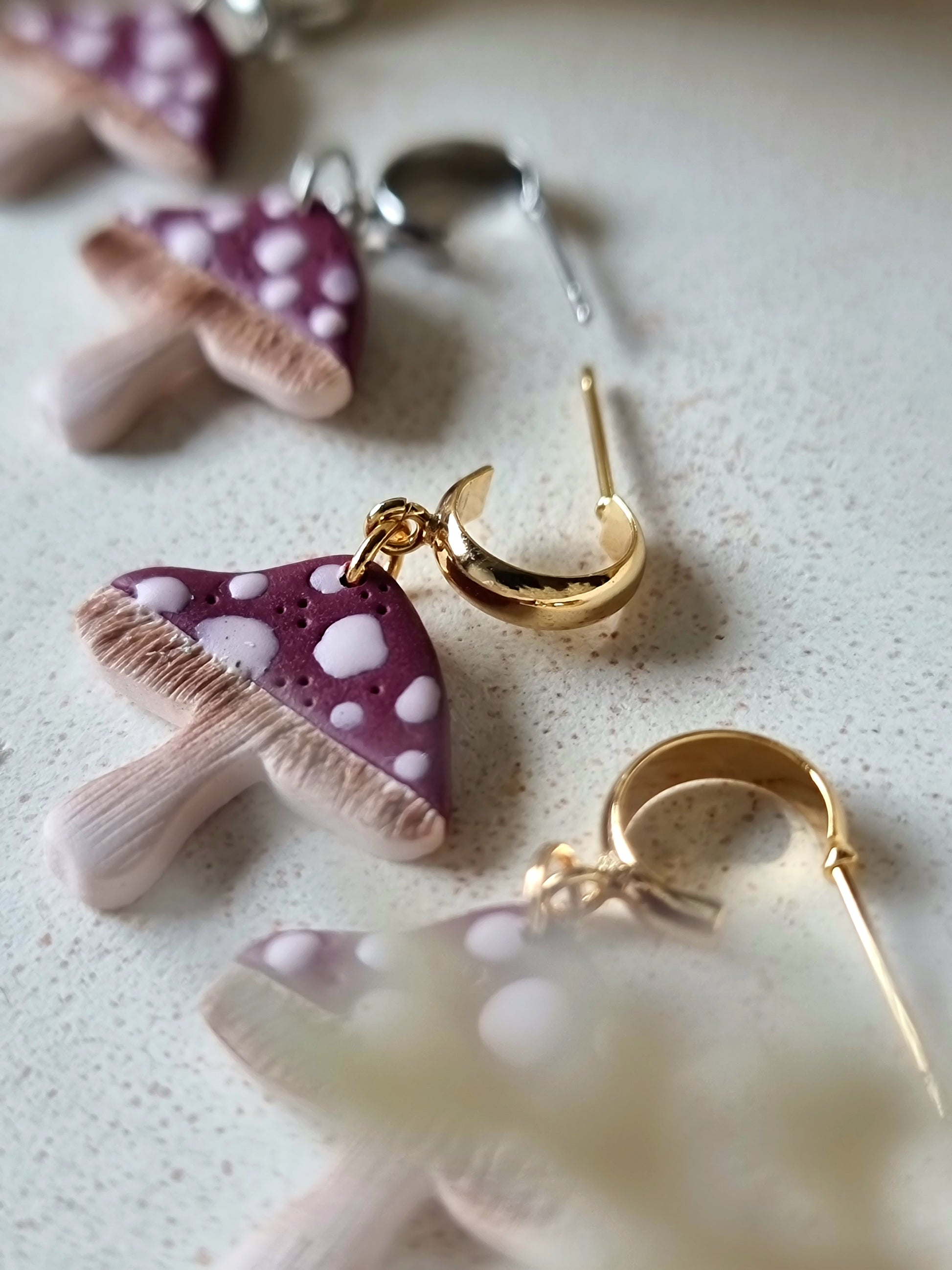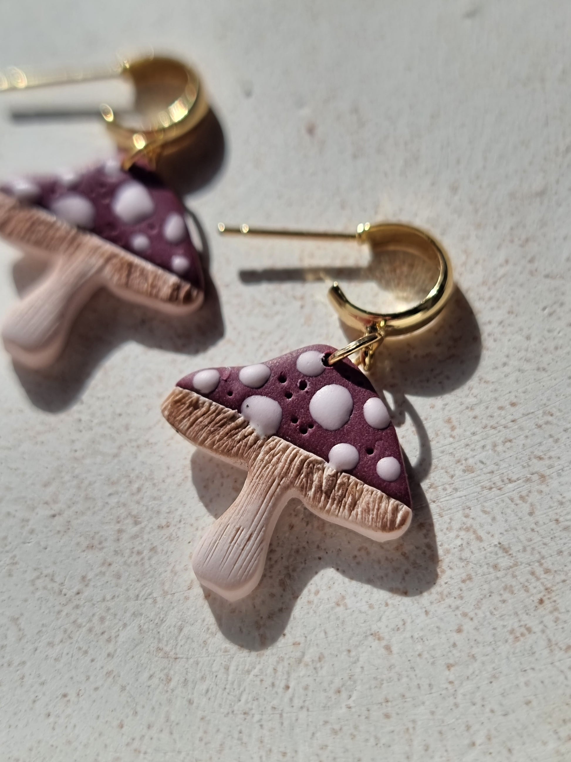 Introducing our handmade Mushroom Huggies - perfect for adding a touch of autumn style to any outfit. Made with hypoallergenic materials and 24k gold plating, these earrings are not only stylish but also gentle on sensitive ears. Upgrade your earring game with our Mushroom Huggies today!