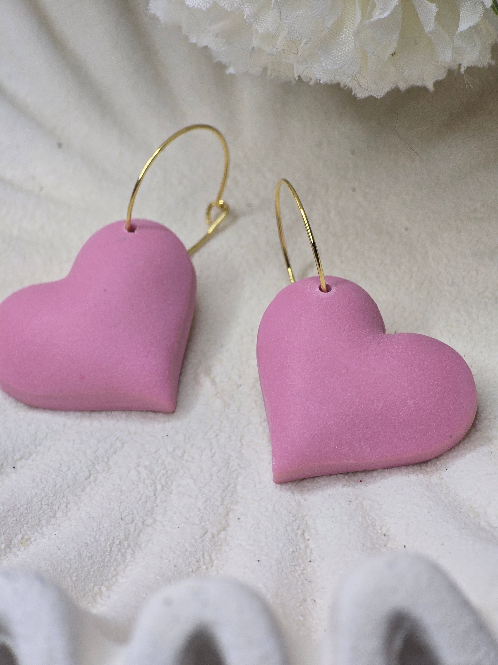 Add a playful touch to your outfit with our Pink Bubble Heart Hoops. These charming earrings, made from durable polymer clay and featuring 24k gold plated stainless steel hoops, offer a fun pop of colour and style. Switch them out for silver hoops if that is more your style!
