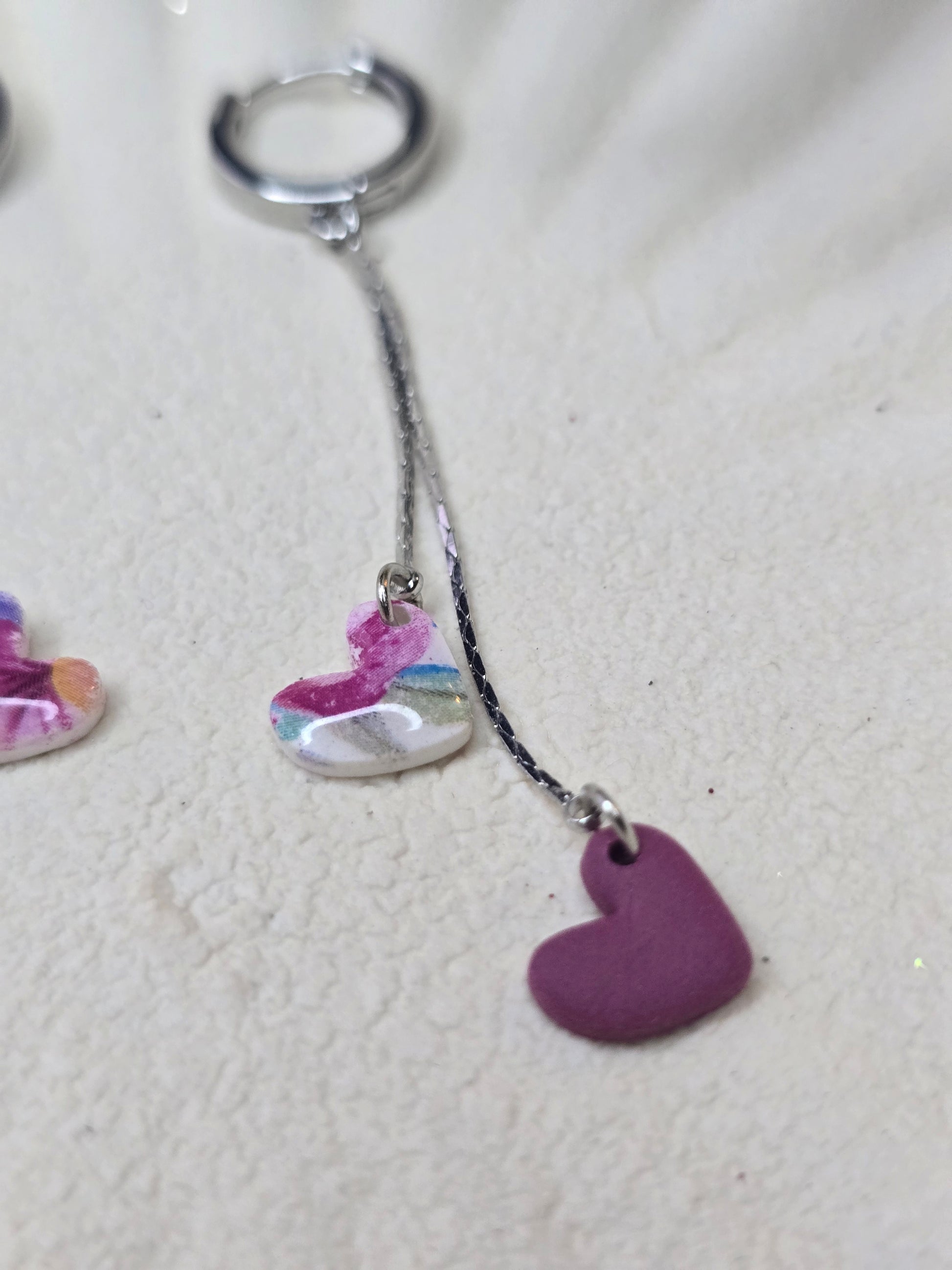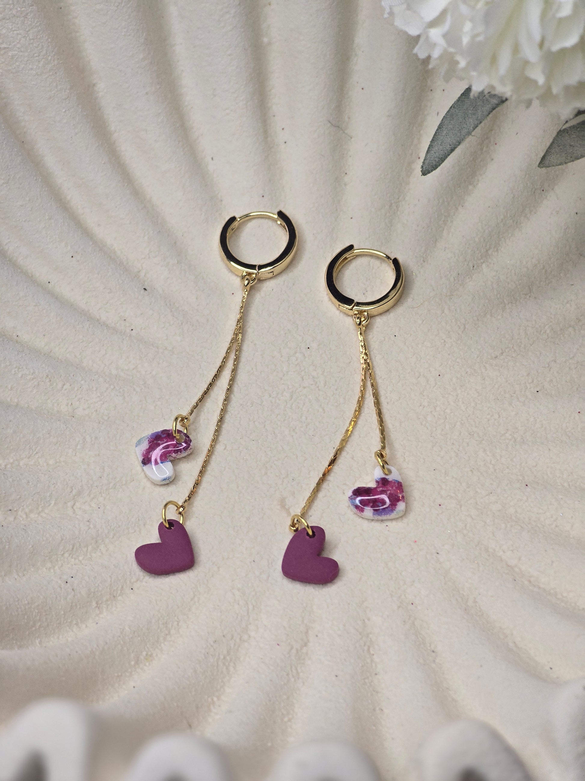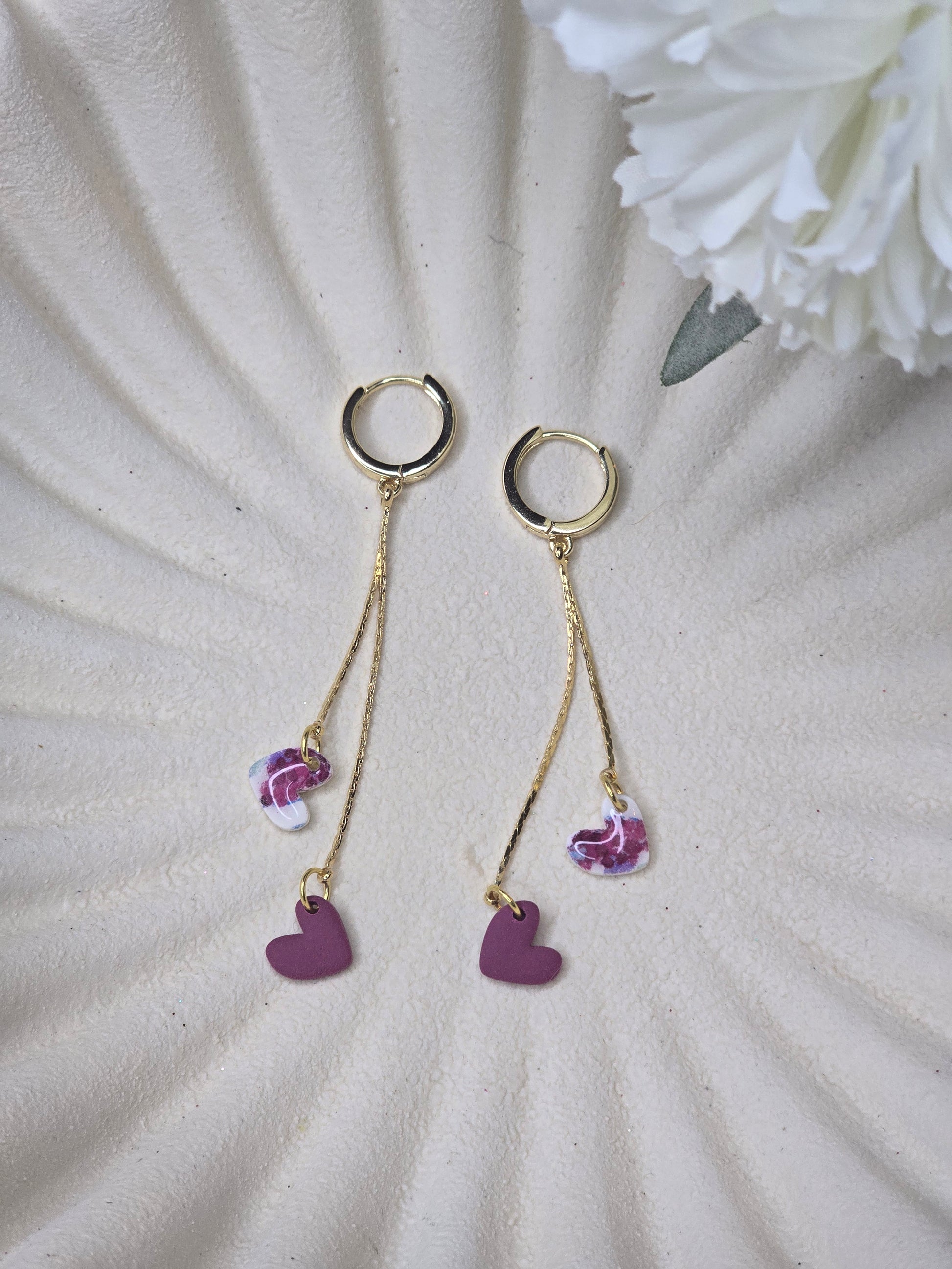 Add a touch of charm to your outfit with these heart drop hoops. Made from lightweight polymer clay and luxurious 24k gold and rhodium plated stainless steel, they offer a stylish way to express your personality while ensuring comfort throughout the day. Perfect for any occasion!